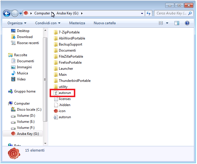1. avvia il programma autorun presente nella cartella che il sistema operativo ha assegnato al token USB