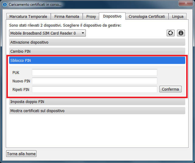 Il tuo dispositivo di firma è stato sbloccato: d'ora in avanti, il tuo nuovo PIN sarà quello che hai riportato nel campo Inserire il nuovo PIN.